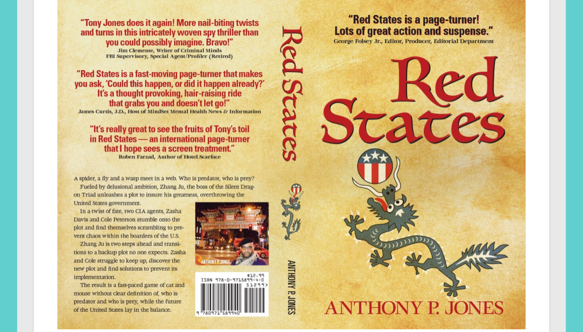 Step into the world of Anthony P. Jones with a specially curated raffle basket featuring his personal favorites. Enjoy all four of his novels — Red States, D8 With F8, Operation Smokeout, and Sorrowful Mysteries — along with the wine, scotch, and treats he loves.